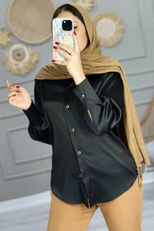 شومیز ساتن دکمه چوبی